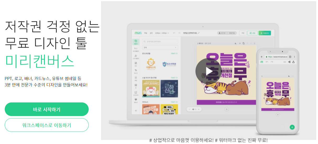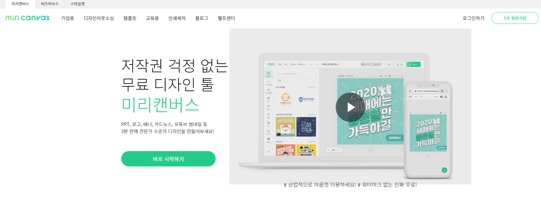 그래서 이번에는 저작권 걱정 없이 사용 가능한 무료! 디자인 툴 미리 캔버스를 소개하고자 합니다.