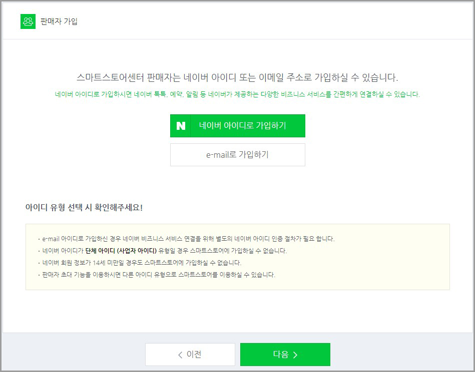 2. 판매자 가입하기 버튼을 클릭해 주세요