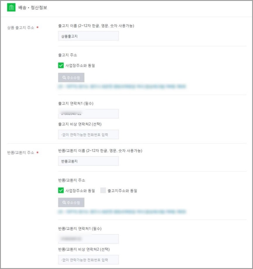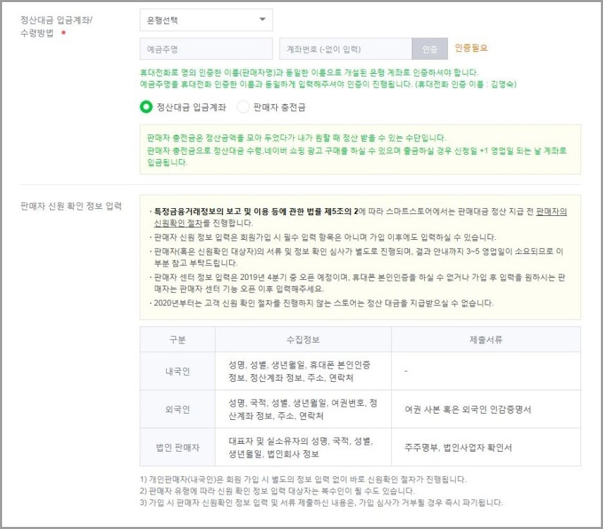 6. 판매자명과 연락처, 주소 등 판매자 정보를 입력해 주세요