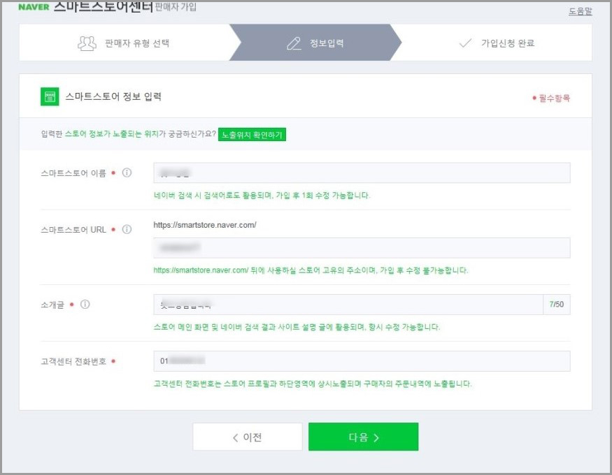 7. 스토어 이름과 URL 등 스토어 정보 입력